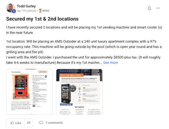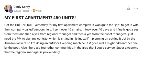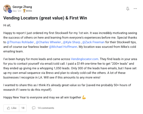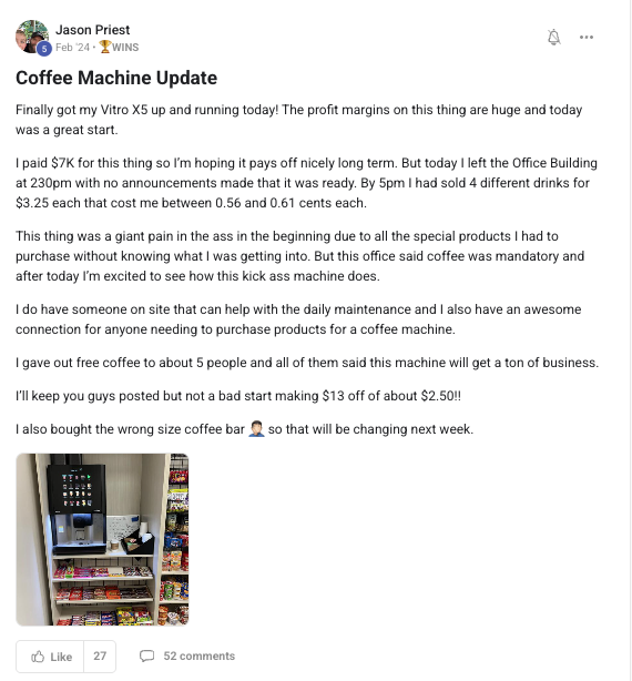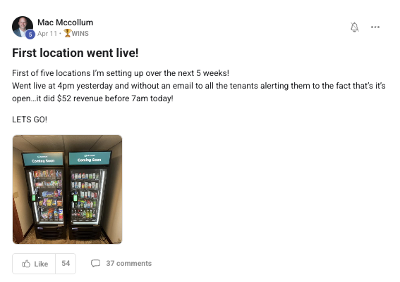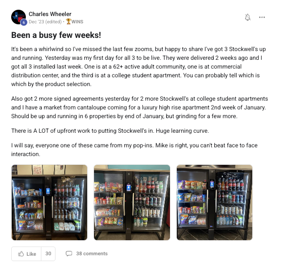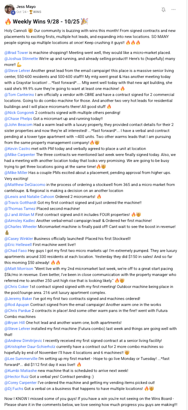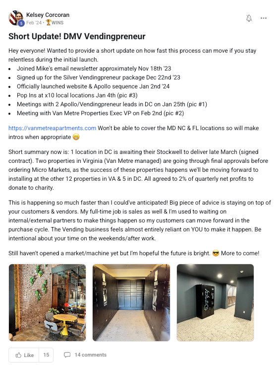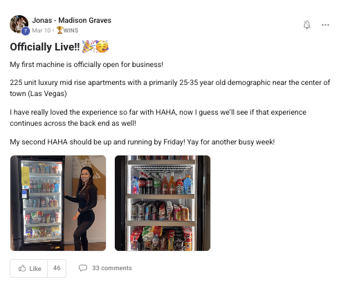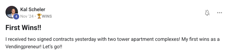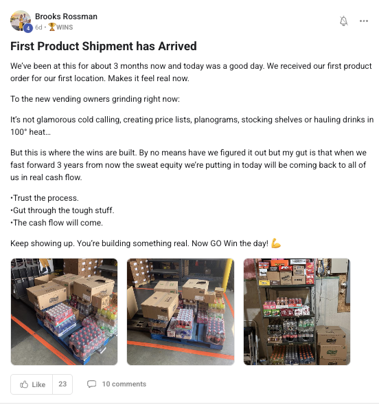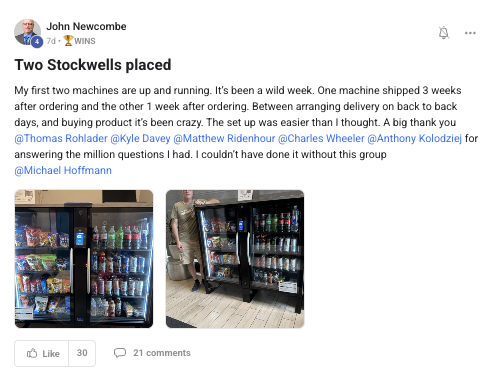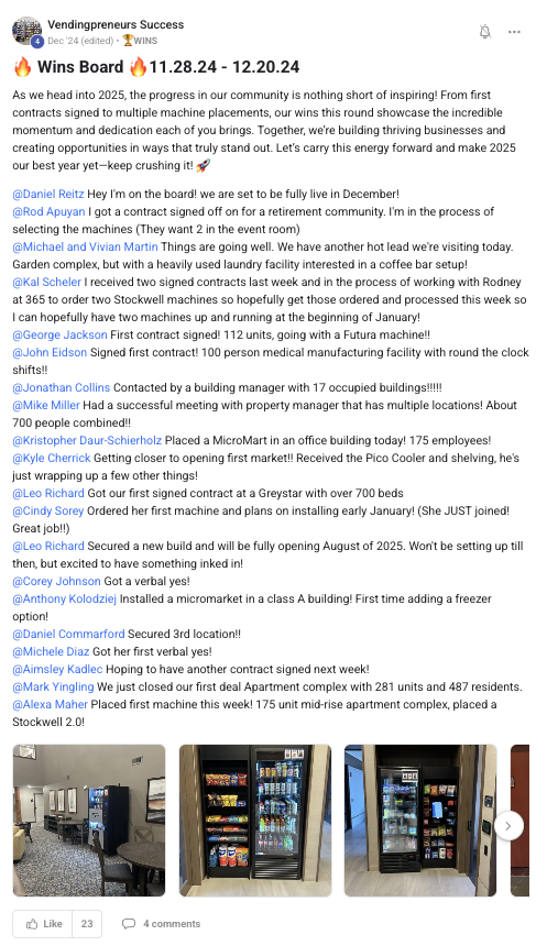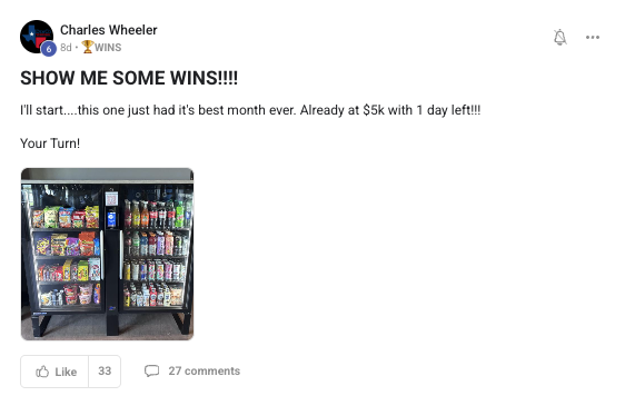 A collection of wins and achievements from across the entire Vendingpreneurs community.
