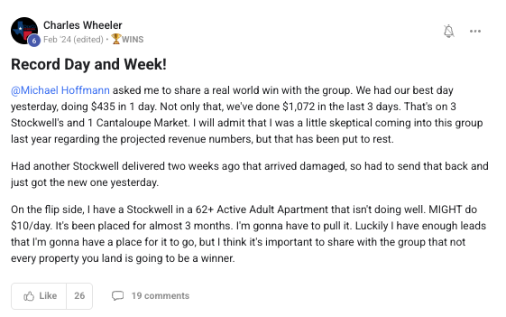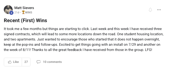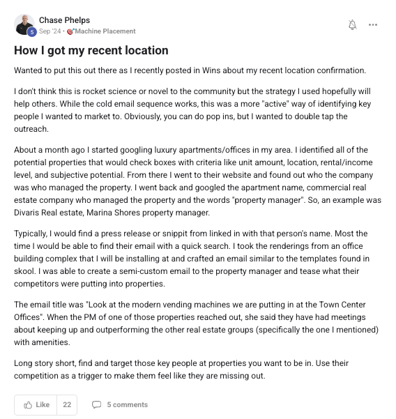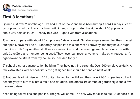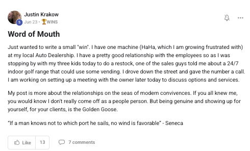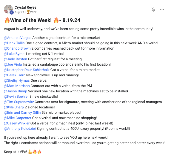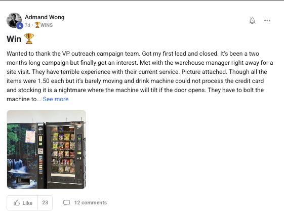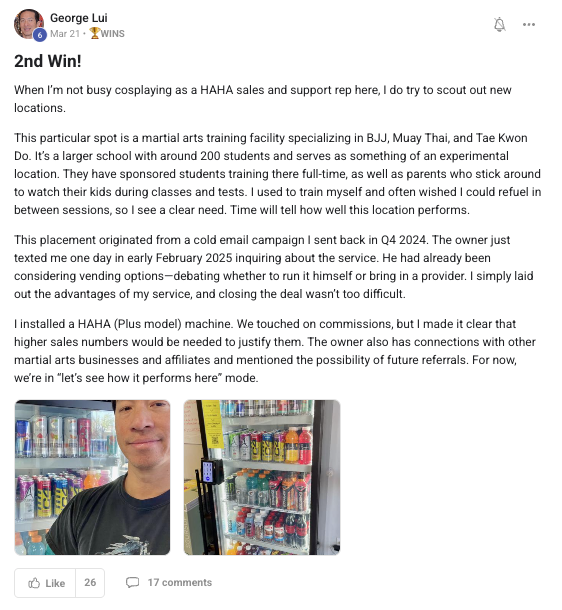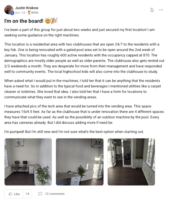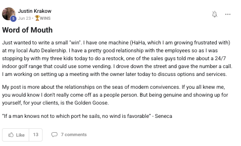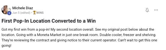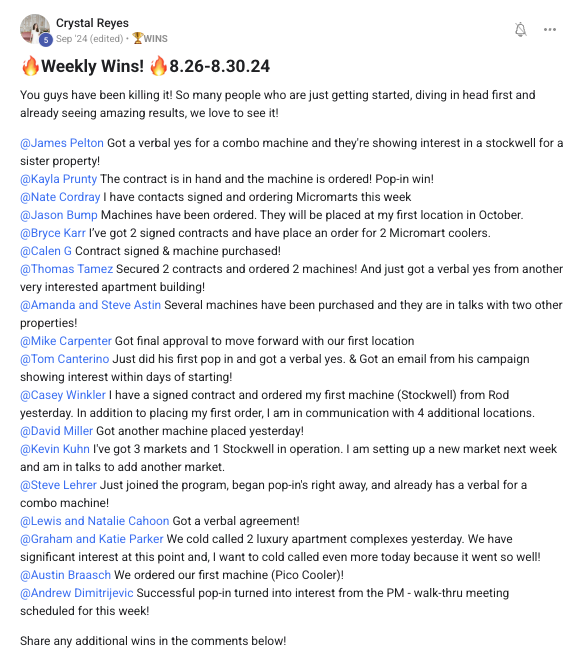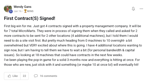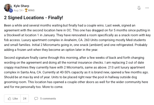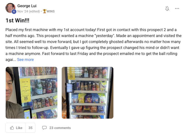 A collection of wins and achievements from across the entire Vendingpreneurs community.