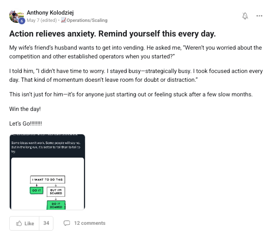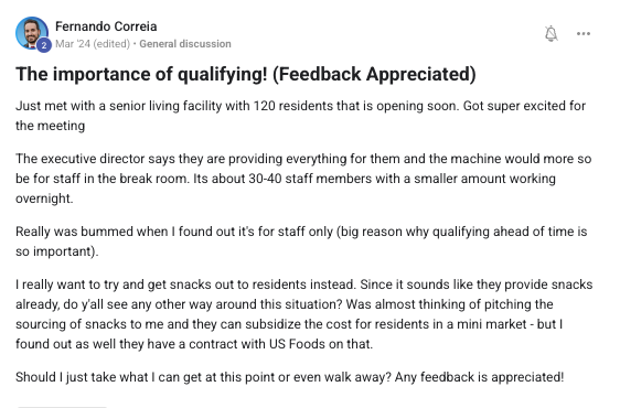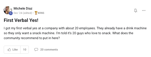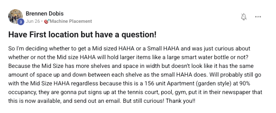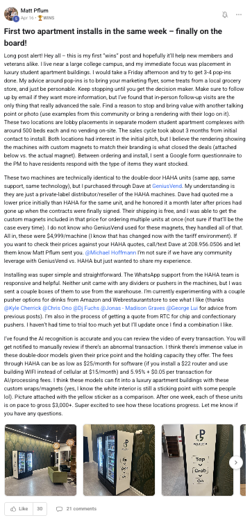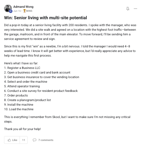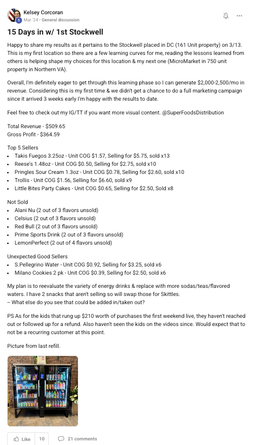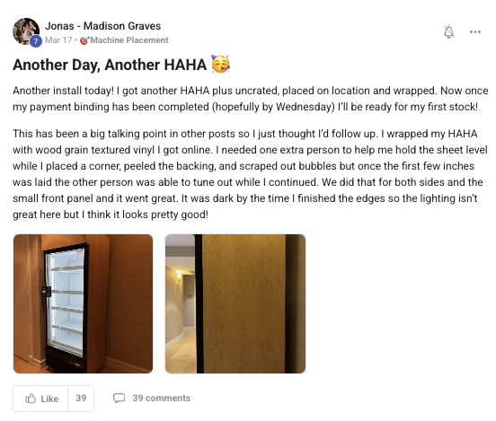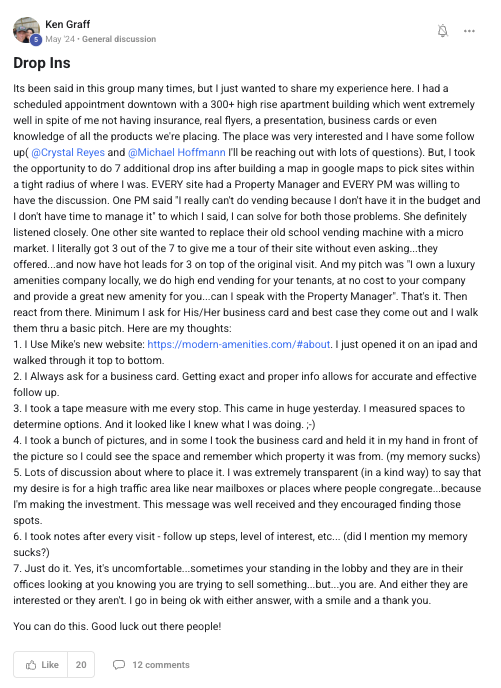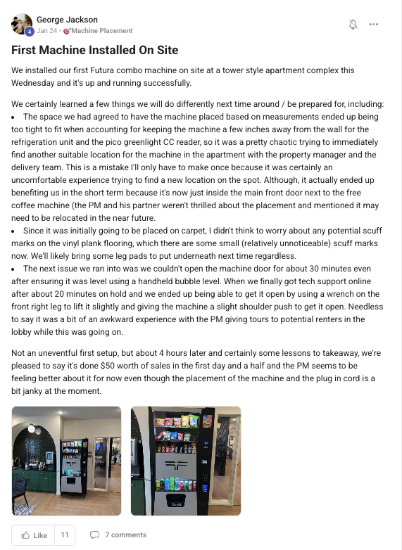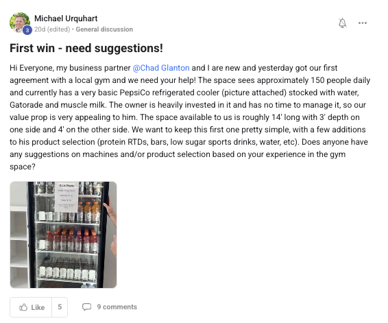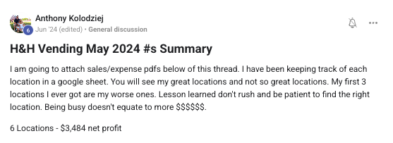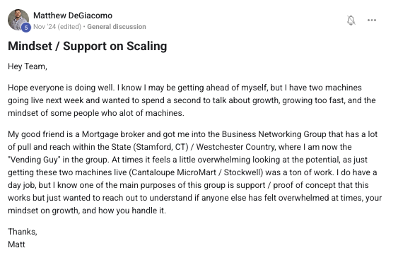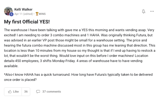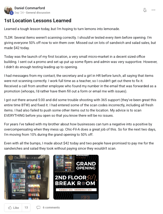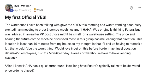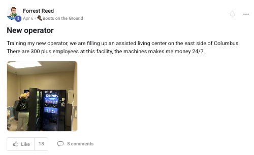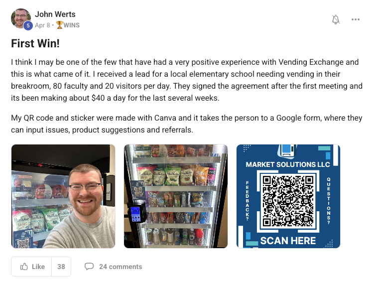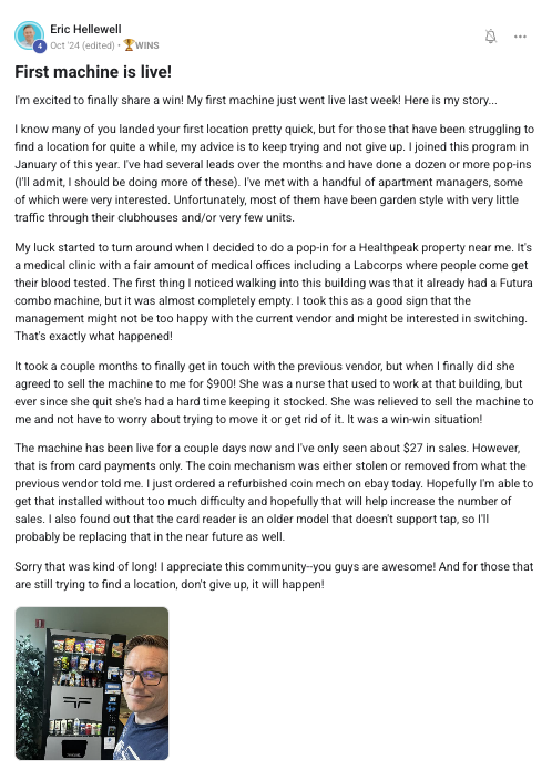 Building a successful and growing vending business with ongoing support from the VP community.