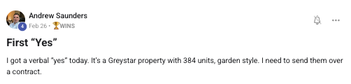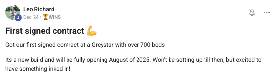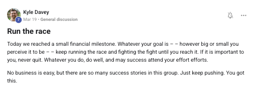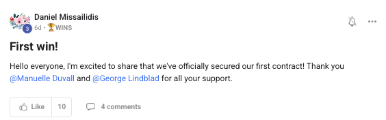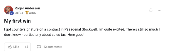 Celebrating the first big business milestone — the result of consistent action and VP coaching.